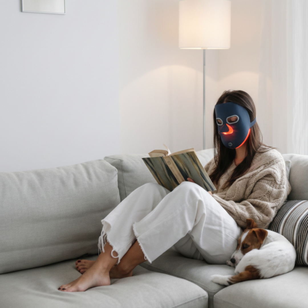 La lumière rouge (633 nm) et proche infrarouge (830 nm) activent les cellules de la peau en profondeur, favorise la régénération et stimule la production naturelle de collagène.